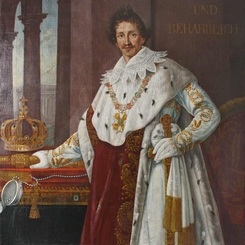 Dieses lebensgroße Portrait König Ludwig I. von Bayern ist eine Kopie des Krönungsportraits J.K. Stielers von 1826.