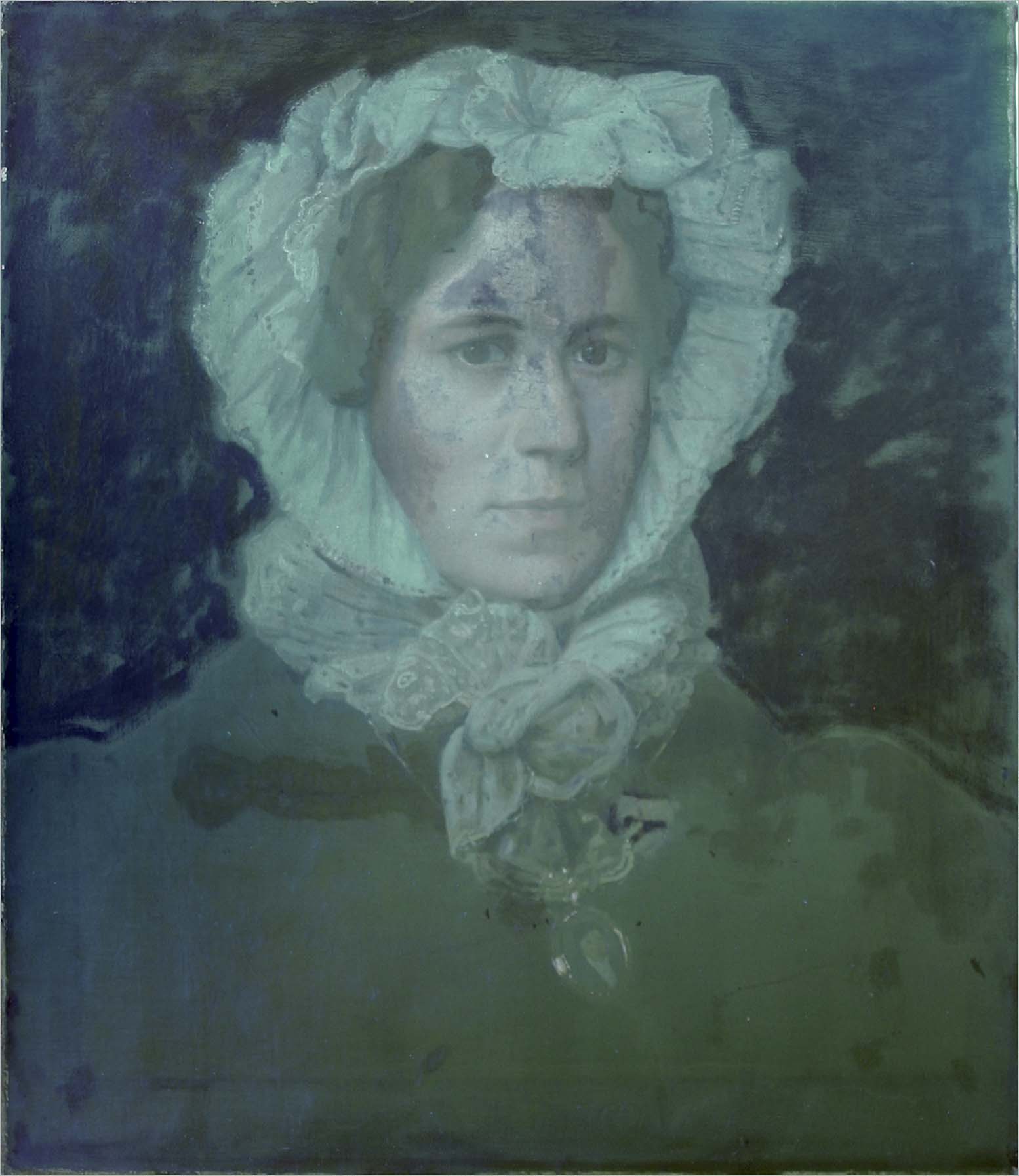 In der UV-Luminiszenzaufnahme waren bereits umfangreiche Retuschen und Übermalungen erkennbar. So war beispielsweise der Bildhintergrund nahezu vollständig übermalt.