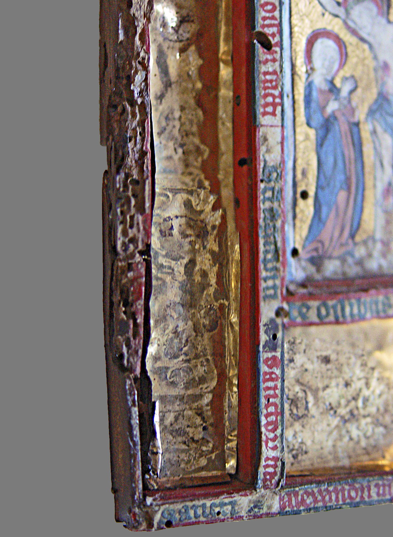 Before the exhibition some conservation treatment was necessary to allow display of the diptych: